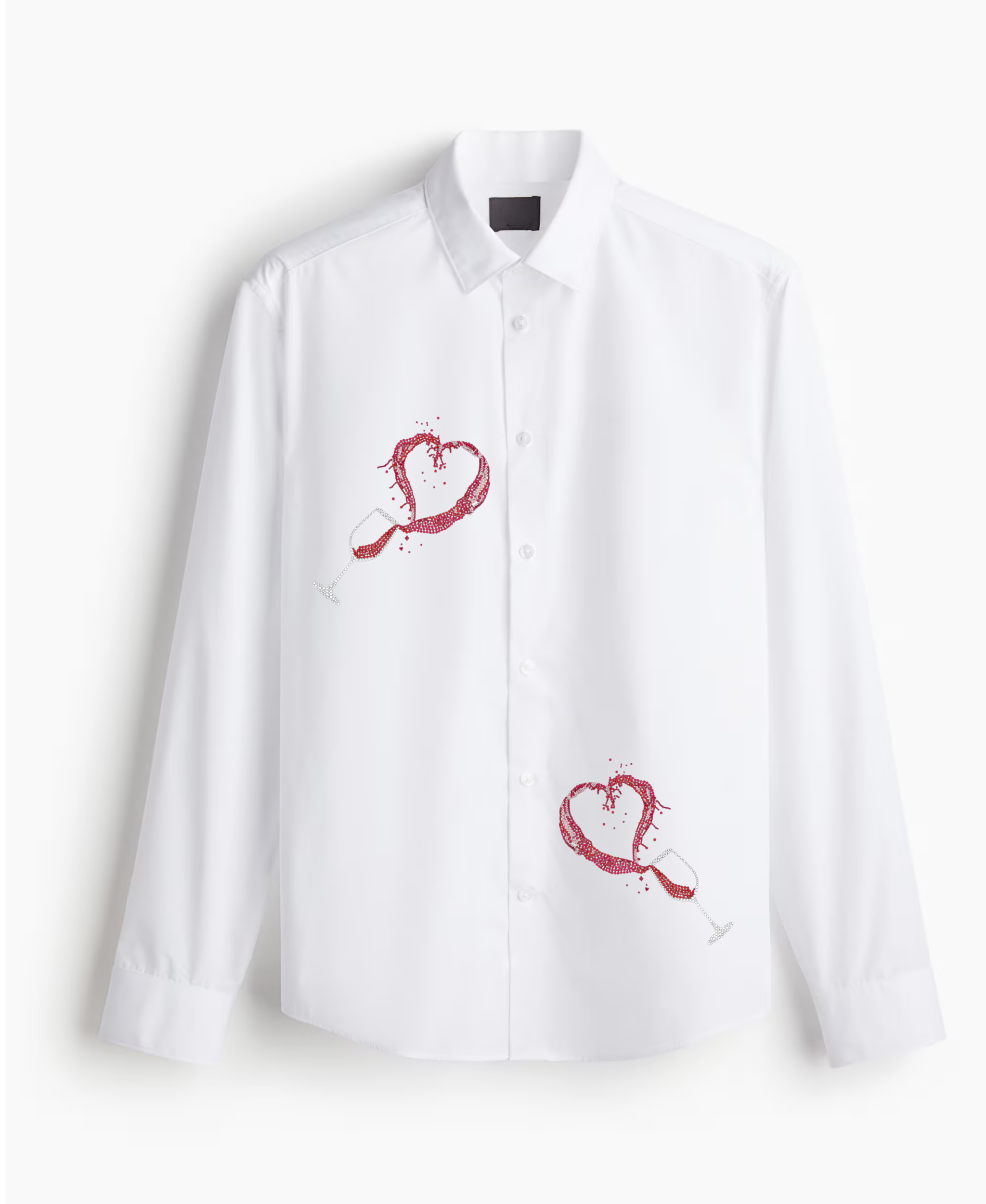 Men’s White Button-Down Shirt with Dual Wine Glass Embroidered Art