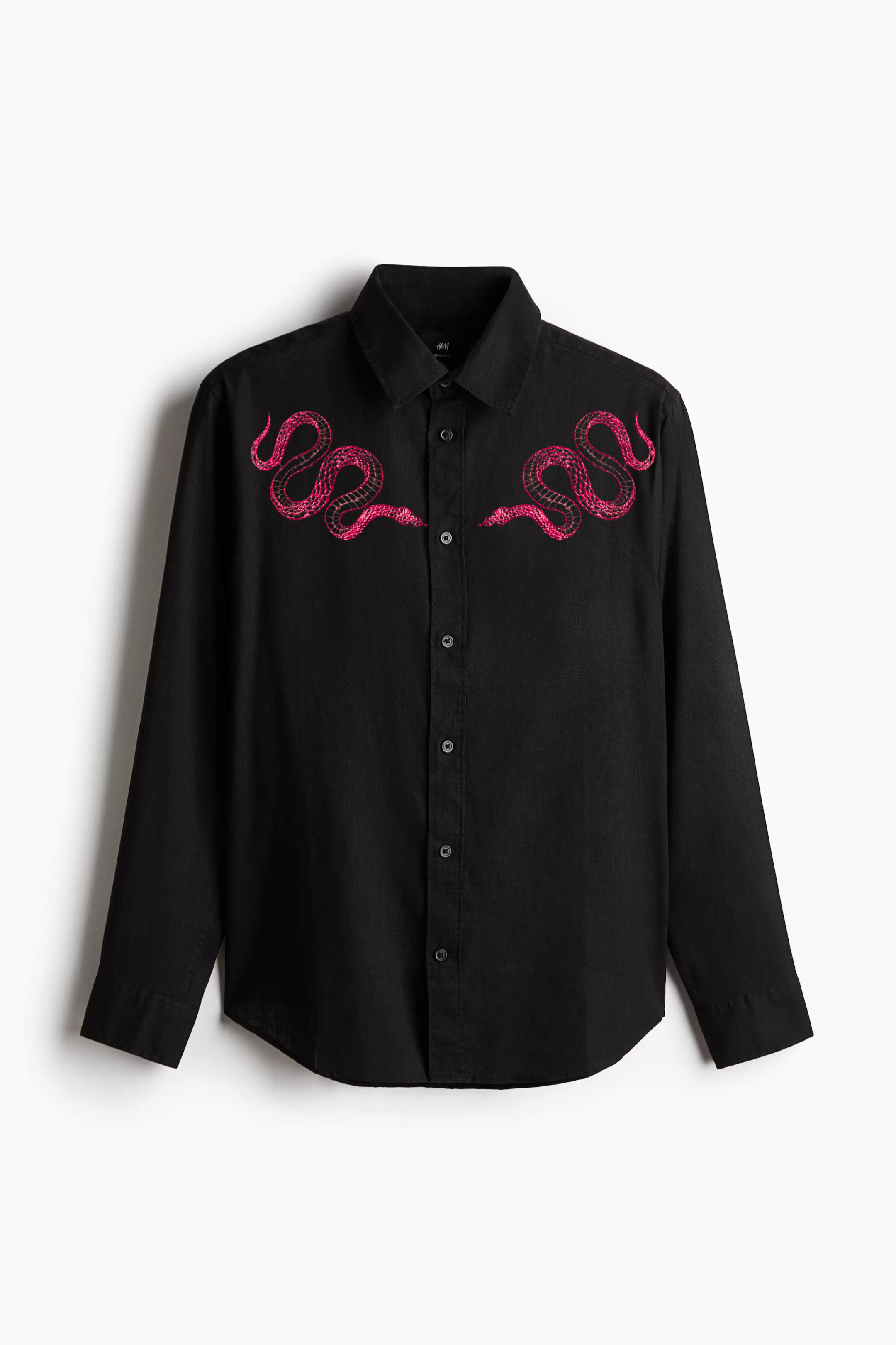 Men's Micro-Ribbed Streetwear Shirt with Pink Snake Embroidery